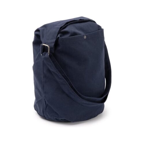 Kierrätetystä puuvillasta (240 g/m²) valmistettu laukku, jossa etutasku, nappikiinnitys ja sisätasku. Säädettävä kahva.