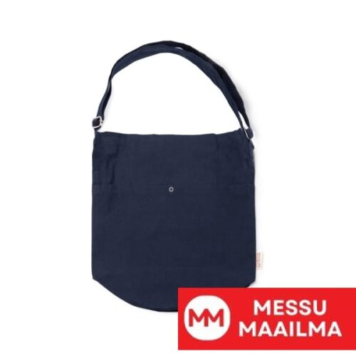 Kierrätetystä puuvillasta (240 g/m²) valmistettu laukku, jossa etutasku, nappikiinnitys ja sisätasku. Säädettävä kahva.