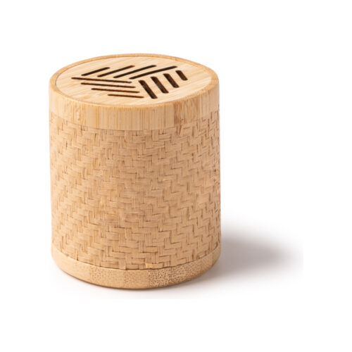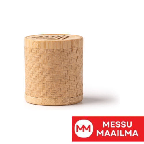 Langaton kaiutin, joka on valmistettu luonnonkuitujen ja bambun yhdistelmästä. Teho 3 W. Pakattu ekologiseen laatikkoon.