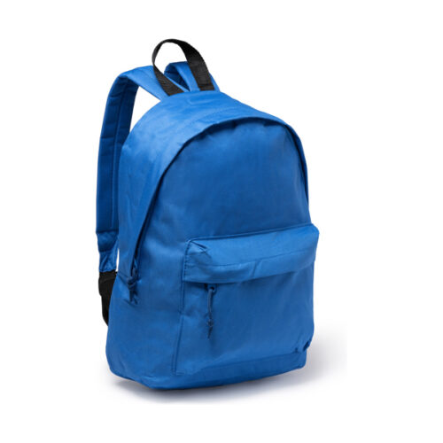 Perusreppu kestävästä kankaasta. 1. Kaksinkertainen olkahihna ja kontrastivärinen kantokahva. 2. Kaksi taskua: päätasku ja yksi etutasku, jossa on yhteensopivat vetoketjut, läpät ja vetimet.
