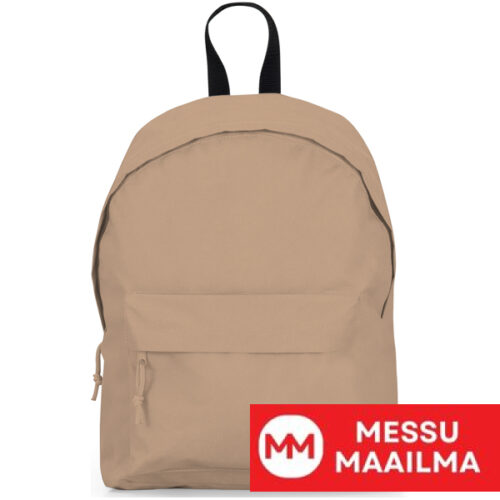 Perusreppu kestävästä kankaasta. 1. Kaksinkertainen olkahihna ja kontrastivärinen kantokahva. 2. Kaksi taskua: päätasku ja yksi etutasku, jossa on yhteensopivat vetoketjut, läpät ja vetimet.