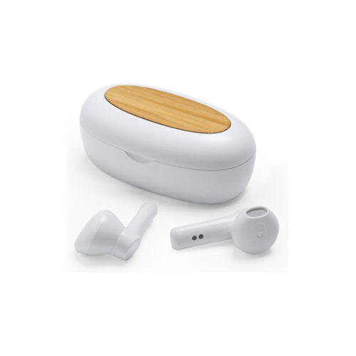 Langattomat Bluetooth 5.0 -kuulokkeet latauskotelolla. Valmistettu kierrätetystä ABS-muovista ja bambupäällisestä. Ohjauspaneeli integroidulla kosketusteknologialla kuulokkeissa. Handsfree-toiminto. Mukana kotelo ladattavalla akulla, magneettisuojus ja micro-USB-kaapeli.