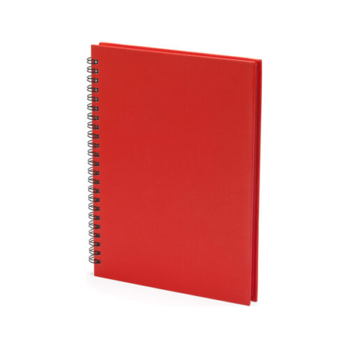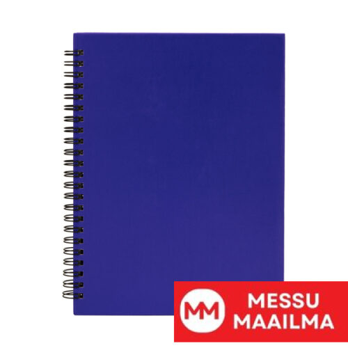 Spiraalimainen rengasmuistikirja, jossa mikrorei’itetyt viivoitettuja arkkeja. Kovat kannet kierrätyspahvista. 80 sivua.