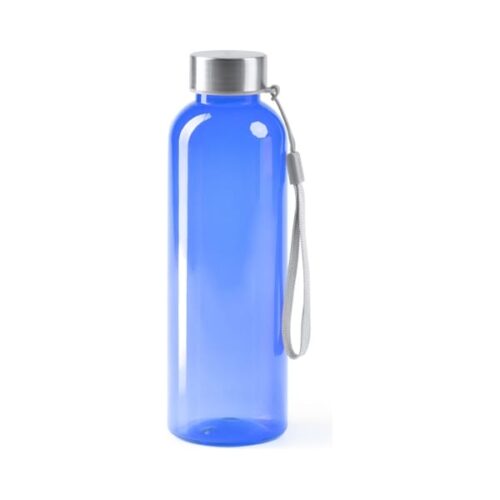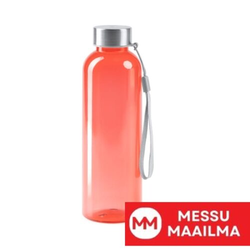 Läpikuultava RPET-pullo. Tilavuus 600 ml. Mukana kantohihna. Pullo, jossa on erilainen muotoilu, joka on huomioinut ympäristön huomioimisen.