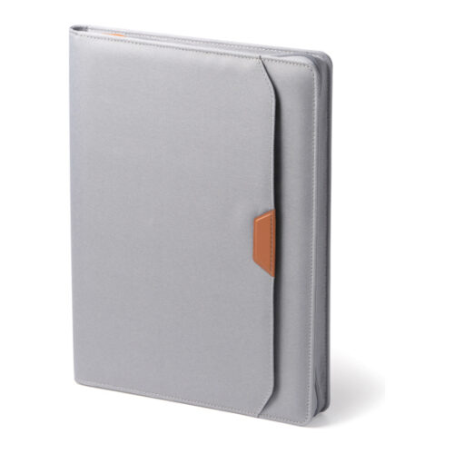 Monikäyttöinen A4 600D RPET- ja PU-kansio vetoketjulla. Ulkotasku, useita sisälokeroita ja neljä korttipaikkaa. Mukana kynäteline. 20 arkin irrotettava viivoitettu muistikirja.