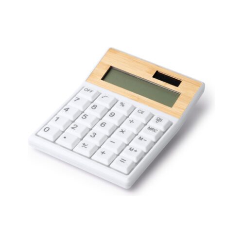 8-numeroinen laskin kierrätetystä ABS-muovista ja bambusta. Toimii nappiparistolla (sisältyy pakkaukseen) ja ladattavalla aurinkoenergialla. Toimitetaan ekologisessa laatikossa.