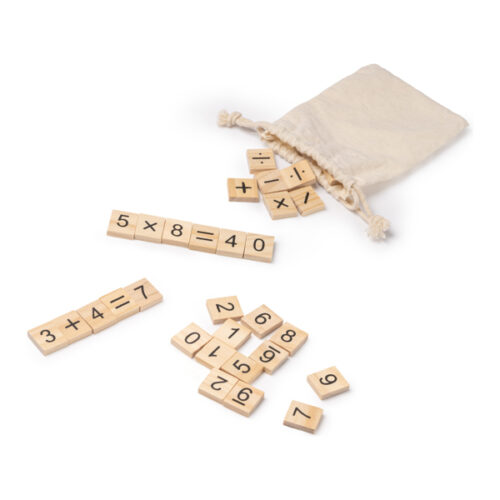 Puinen matematiikkapeli lapsille. 32-osainen setti. Toimitetaan puuvillapussissa.
