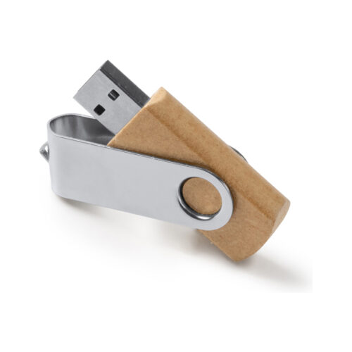 USB-muistitikku kierrätetystä pahvista, jossa metallinen pyörivä klipsi. Kapasiteetti 16 Gt.