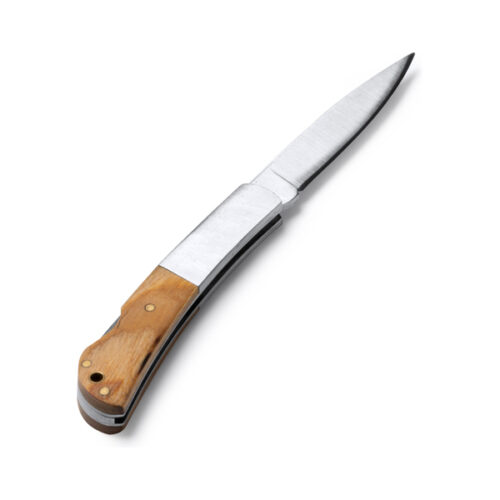 Linkkuveitsi ruostumattomasta teräksestä, yhdistetty kahva luonnonpuusta. Turvalukko. Pakattu ekologiseen rasiaan.