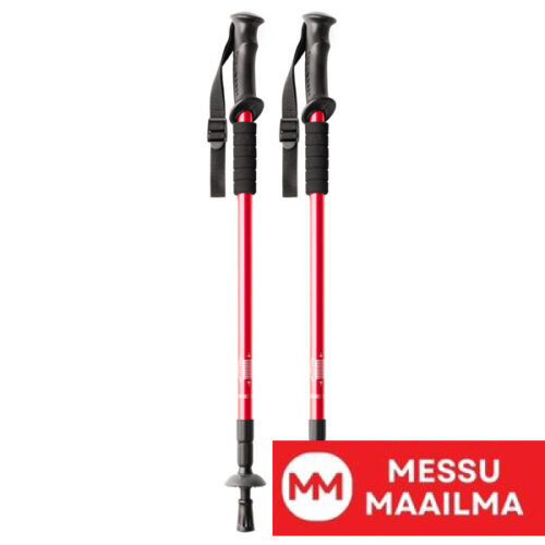 Kokoontaitettava alumiininen vaellussauvasetti iskunvaimennuksella. Ergonominen kahva ja säädettävä turvahihna. Mukana lumilisävaruste. Vahvistettu maata koskettava pinta.