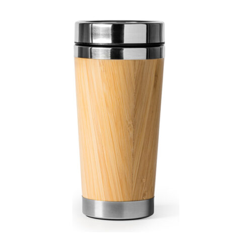 304 ruostumattomasta teräksestä valmistettu kuppi, jossa on bambuinen ulkoseinä. Tilavuus 500 ml ja annostelukorkki. Täydellinen kuppi yrityksesi mainostamiseen, luontoa unohtamatta.
