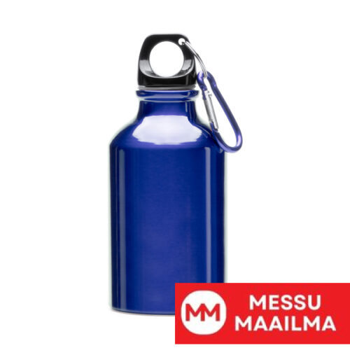 Alumiininen juomapullo karbiinihaalla. Musta korkki ja karbiinihaka samassa metallinvärisessä värissä kuin pullo. Tilavuus 330 ml. Kokonsa ansiosta sitä on helppo kuljettaa mukana aina.