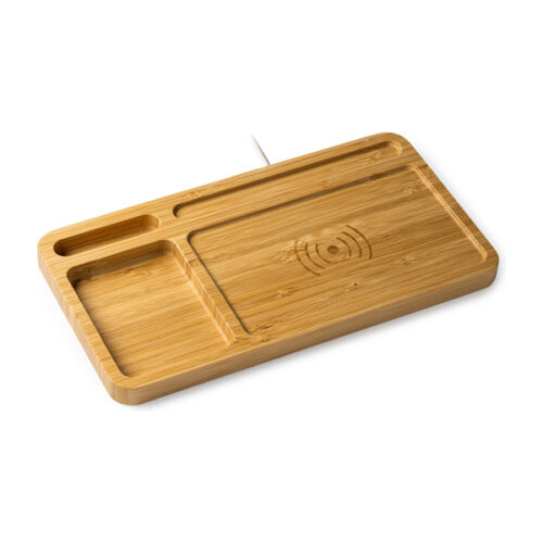 Bambuinen langaton laturi integroitu järjestäjälokeroon. Yhteensopiva langattoman lataustekniikan kanssa. 5 W:n teho. Valkoinen kaapeli sisältyy hintaan.