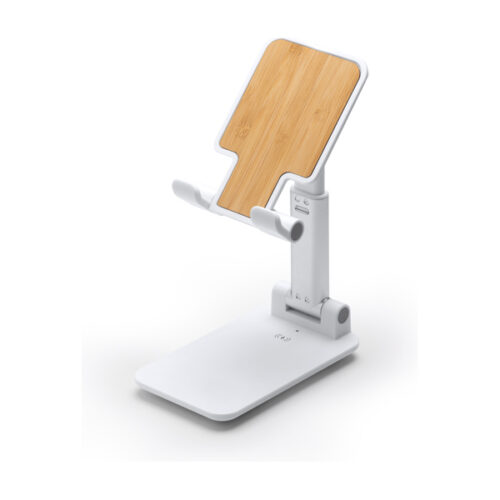 Bambusta valmistetulla yläpinnalla ja valkoisella ABS-muovilla varustetulla alapinnalla varustettu tuki on monipuolinen ja toimiva ratkaisu älypuhelimen pitämiseen pystyssä langattoman latauksen aikana. Sen muotoilu yhdistää bambun lämmön ABS-muovin kestävyyteen, mikä luo elegantin ja modernin ilmeen. Jalusta on säädettävä, joten voit asettaa älypuhelimesi sinulle mukavimpaan ja sopivimpaan kulmaan. Voit katsella ilmoituksiasi, videoitasi tai soittaa videopuheluita, kun laitteesi latautuu langattomasti. Jalustan pohjassa oleva sisäänrakennettu langaton laturi tarjoaa nopean latauksen jopa 15 W:iin asti, joten voit ladata älypuhelimesi tehokkaasti ja kätevästi. Lisäksi siinä on C-tyypin liitäntä, joka parantaa yhteensopivuutta nykyisten laitteiden kanssa. Jalustan pohjassa on kuminen liukumaton pinta, joka varmistaa, että jalusta ja älypuhelimesi pysyvät tukevasti paikoillaan latauksen aikana. Tämä tarjoaa turvallisen ja vakaan kokemuksen. Langaton laturin pidike toimitetaan ekologisessa suunnittelulaatikossa, mikä korostaa heidän sitoutumistaan kestävään kehitykseen ja ympäristönsuojeluun. Se on ihanteellinen valinta niille, jotka etsivät käytännöllistä ja esteettistä ratkaisua tinkimättä tyylistä ja ympäristövastuusta.